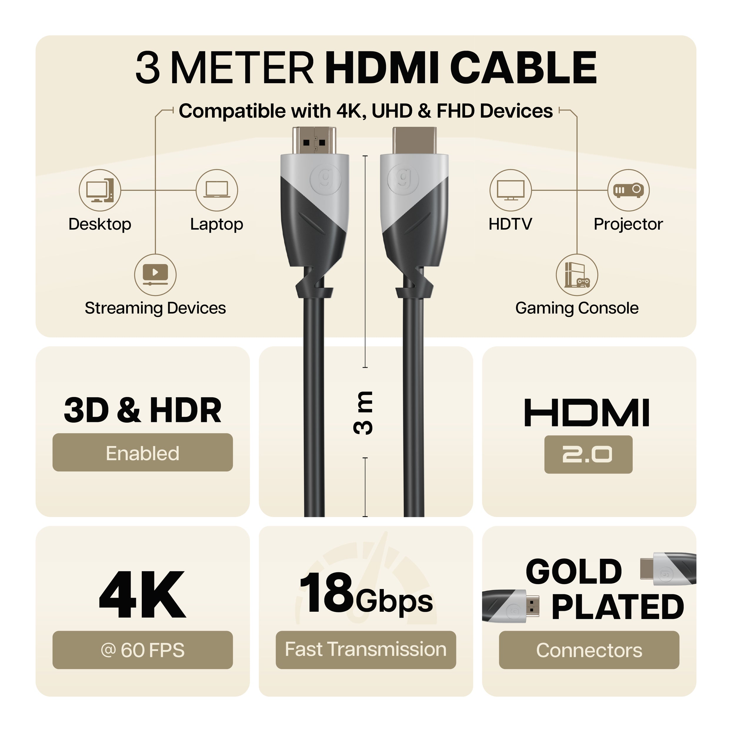 Geonix 3 Meter HDMI to HDMI Cable