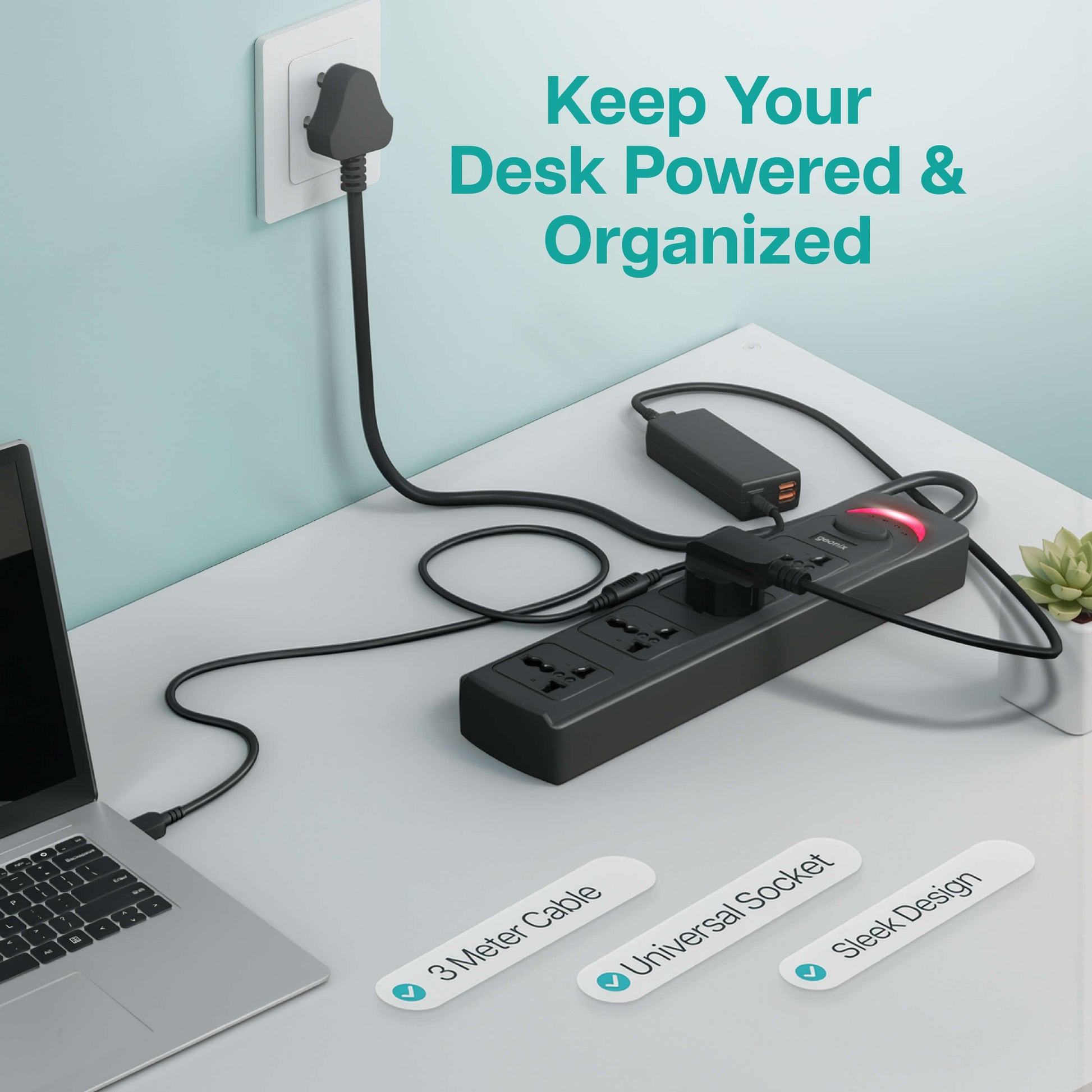 Geonix PowerSpan S4 Extension Board is a reliable and versatile power solution designed for both home and office use. Equipped with 4 universal sockets, each featuring an individual on/off switch, it allows convenient control of multiple devices such as computers, TVs, printers, routers, and other everyday appliances. With a 1500W power capacity and 6A output, it ensures safe and efficient performance even when multiple devices are connected simultaneously. Built with a 3-meter long cable made from 100% pure copper, the PowerSpan S4 offers extended reach, excellent conductivity, and long-lasting durability. Its fire-resistant construction with built-in surge protection safeguards your valuable electronics from voltage spikes, short circuits, and electrical overloads. Compatible with all major plug types, this multi-purpose extension board is ideal for home setups, offices, gaming stations, and commercial environments, delivering dependable power with enhanced safety and convenience.