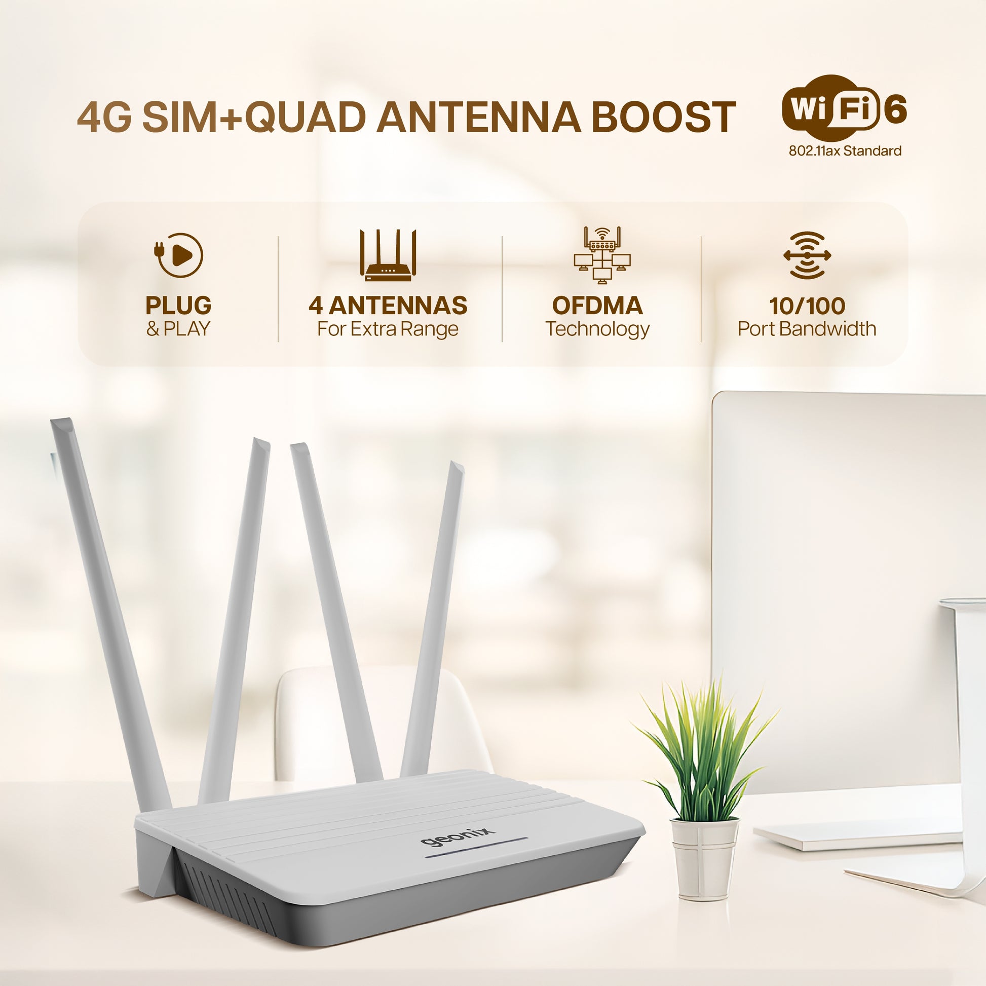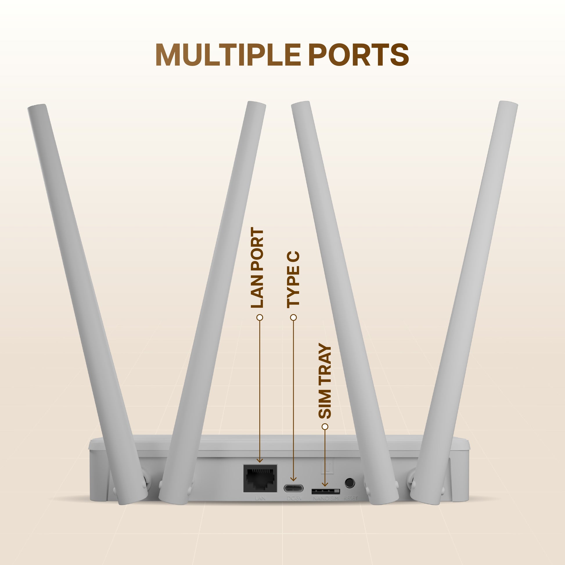 Wireless Single-Band 4G Mobile SIM-Based Router with 4 Antennas offers high-speed internet access through cellular networks. Designed with a built-in SIM card slot, it allows you to insert a mobile data SIM card from any telecom provider for instant internet access. Its compact and portable design makes it ideal for creating mobile hotspots or for use in remote locations. Equipped with four powerful external antennas, the router delivers enhanced signal strength, extended Wi-Fi range of up to 150 meters, and improved connection stability. It also includes an Ethernet port for wired connections to desktops, printers, or other devices requiring a fast and stable link. With plug-and-play functionality, hassle-free installation, and low power consumption, this energy-efficient router provides a seamless and wide-coverage internet experience perfect for both home and on-the-go use.